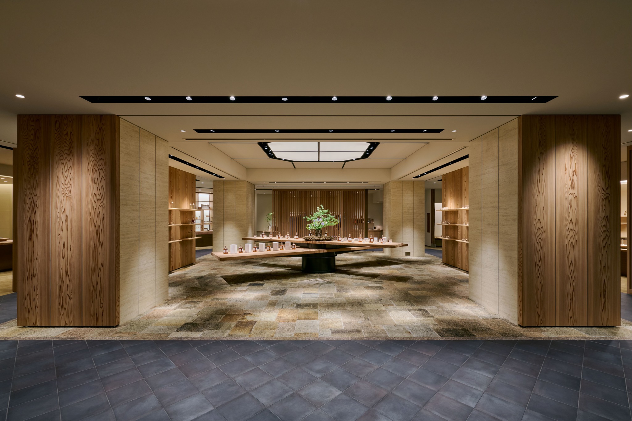 銀座のランドマーク、時計塔の和光本店。その地階が「時の舞台」をコンセプトに様々な時代の古材や天然材を贅沢に編集した空間「アーツアンドカルチャー」として生まれ変わった。フロア中央に鎮座する樹齢1000年を超える霧島杉の2枚の天板を時計の長針と短針に見立てた回転什器。回廊を歩くと、時の経過が生む素材美、最新のファッション、珠玉のアートピース、選りすぐりの品々と遭遇する。ショッピングにとどまらない伝統と革新が共鳴する文化発信地は、2025年度KUKAN OF THE YEAR受賞。