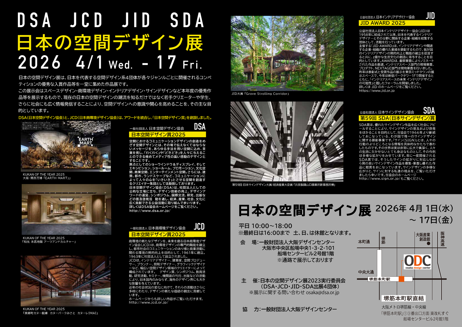 「日本の空間デザイン展」と題て、4月1日から4月17日まで、大阪デザインセンターにて展示をいたします。お近くにお越しの節は、ぜひお立ち寄りください。